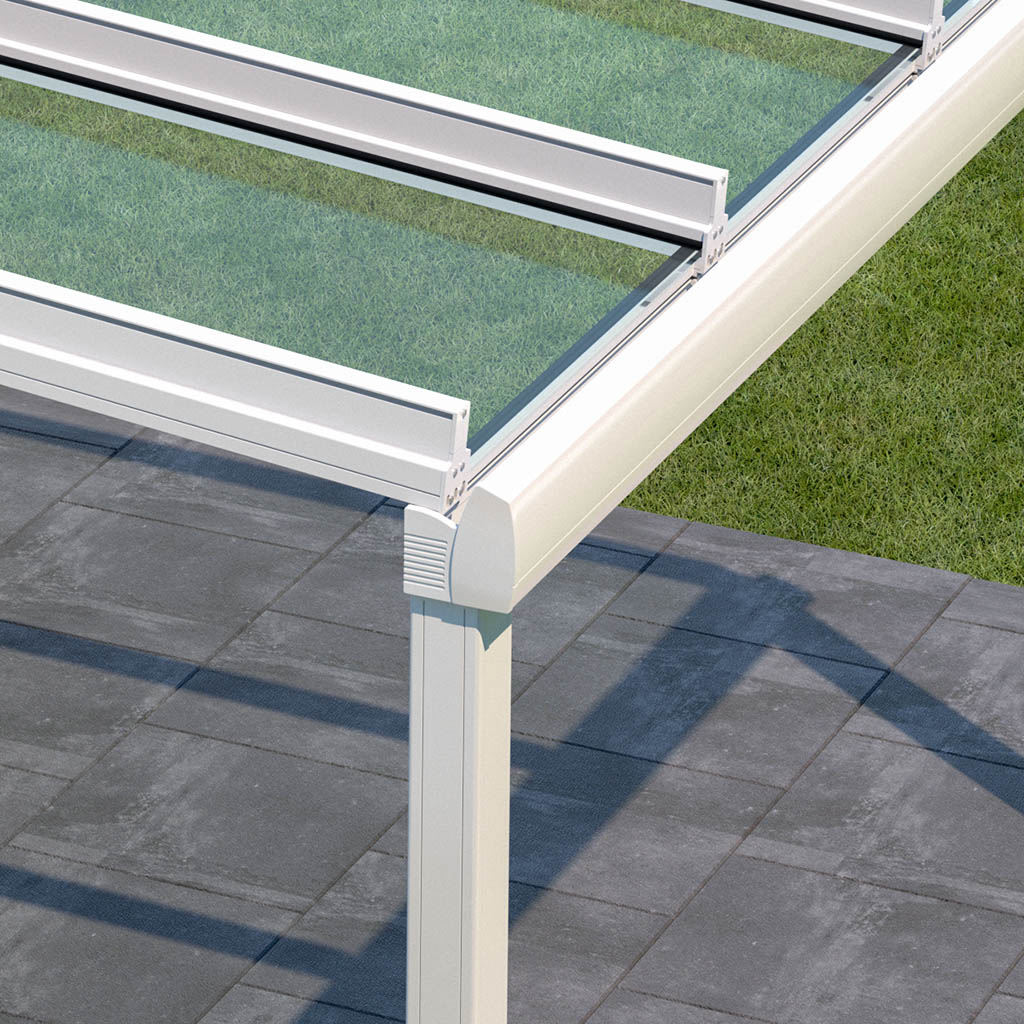 Glazen dak: Perfecte weerbescherming voor grote terrassen.